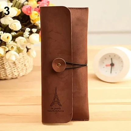 스웨이드 가죽 피라미드 펜슬 케이스(진갈색) / 고급 필통 펜 파우치