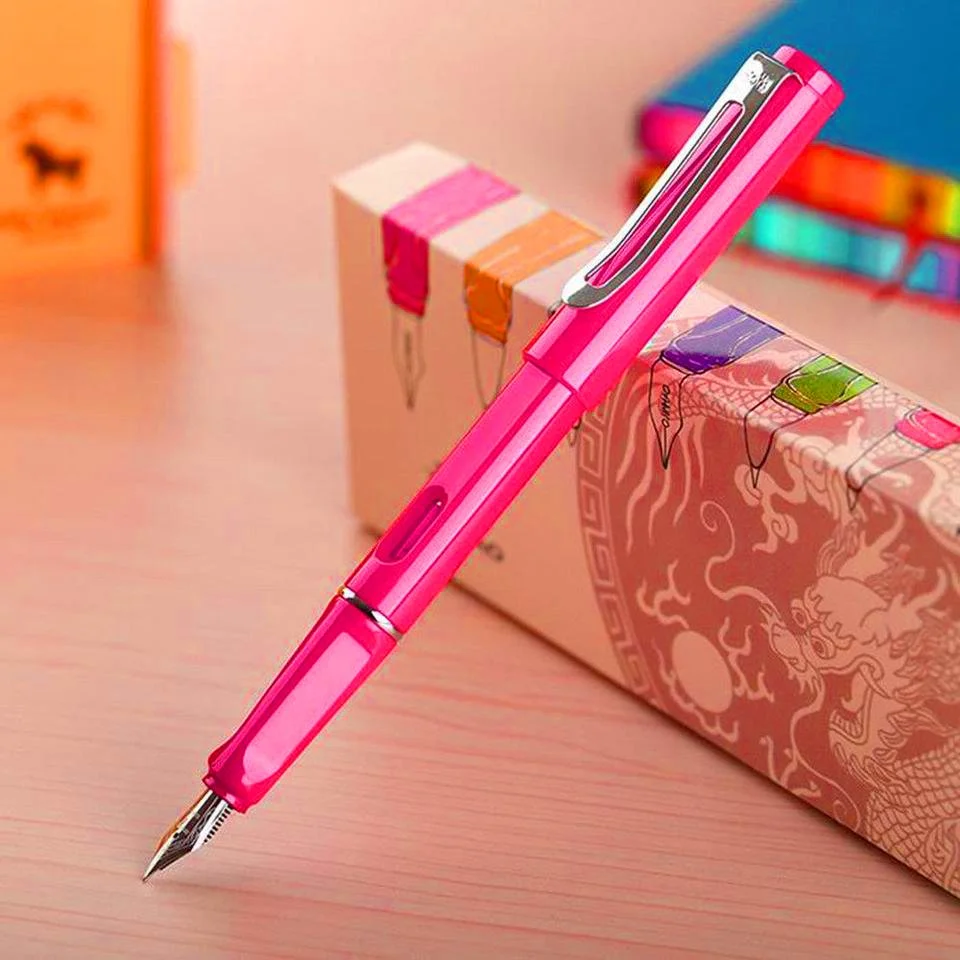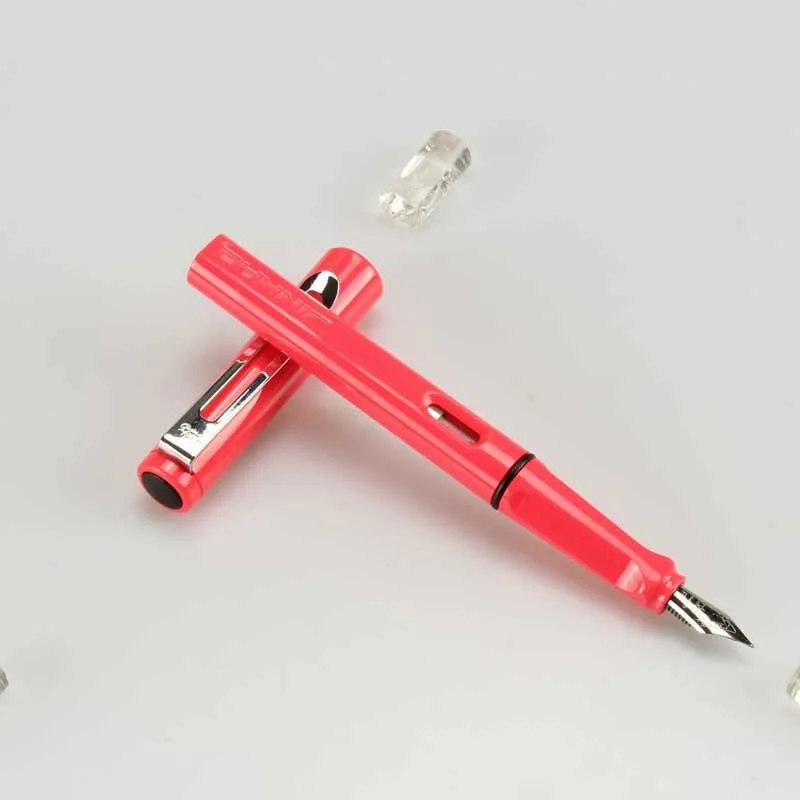 Color Signature Regular Nib Fountain Pen (Pink) / Black Ink Pen for Students & Gifts