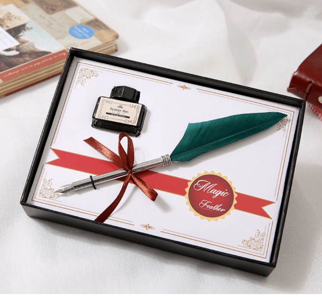 Antique Feather Standard Nib Fountain Pen (Green) / Classic Memories Ink Pen Gift