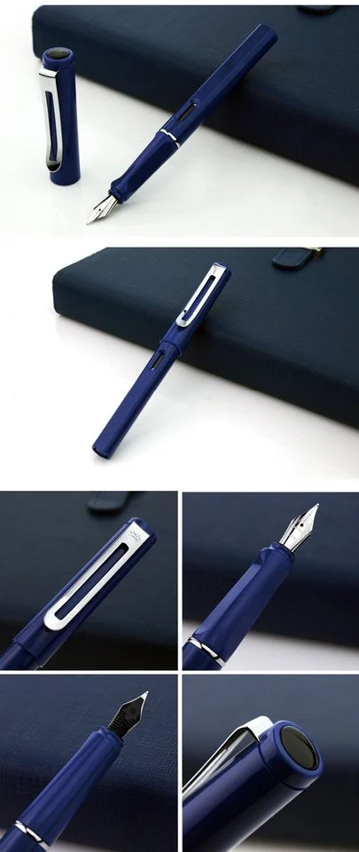 Color Signature Regular Nib Fountain Pen (Blue) / Black Ink Pen for Students & Gifts
