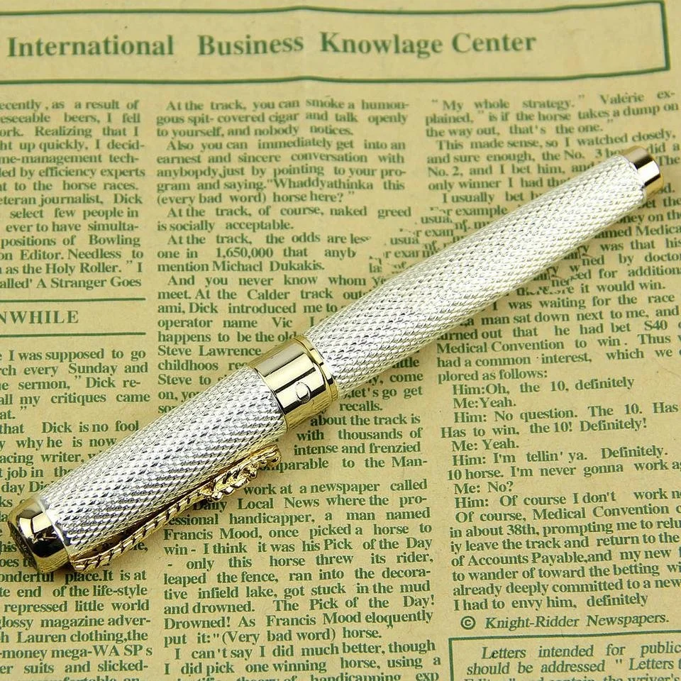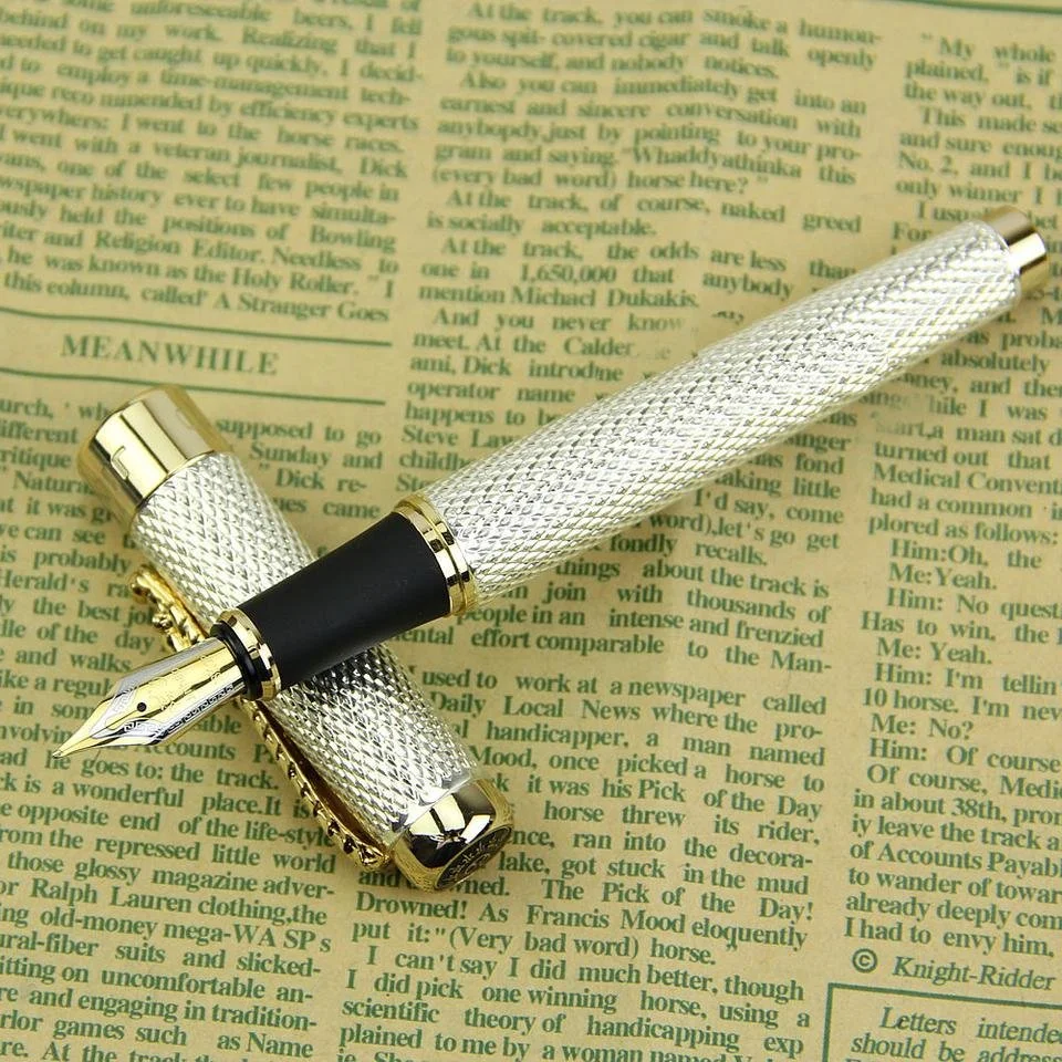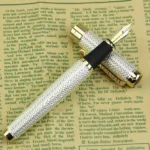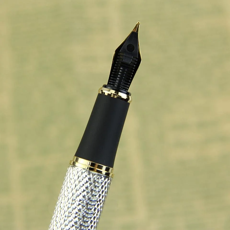 18K GP Silver Gold Textured Standard Nib Fountain Pen / Luxury Ink Pen