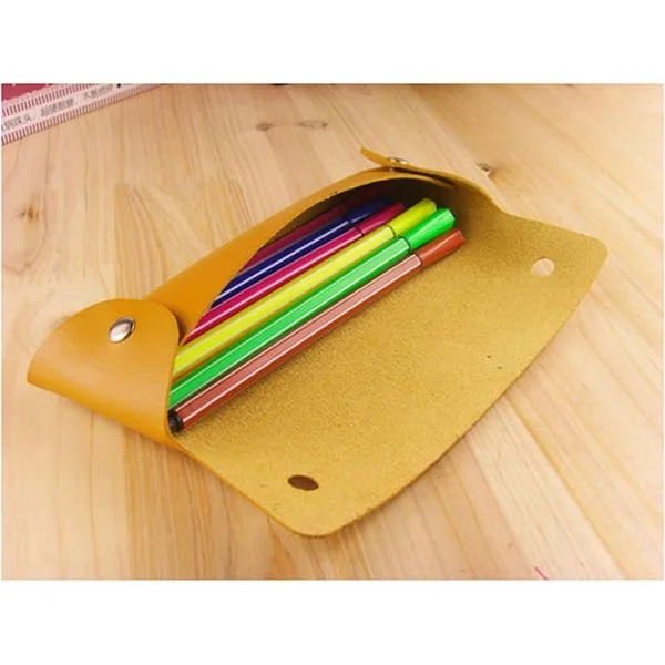 Invo Leather Pencil Case (Yellow) / Pencil Case Pen Pouch Portable