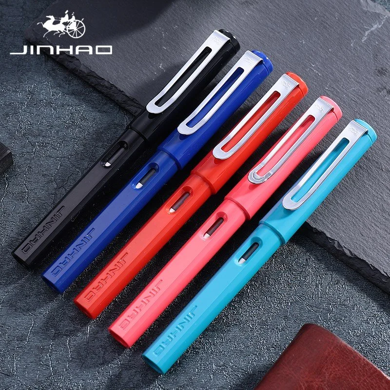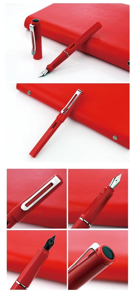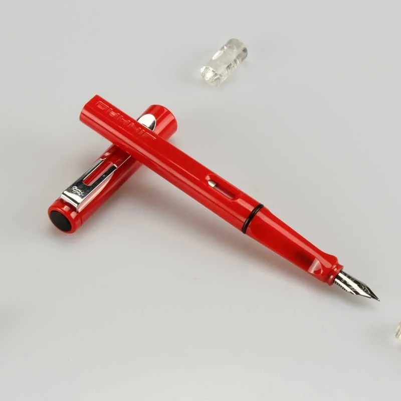 Color Signature Regular Nib Fountain Pen (Red) / Black Ink Pen for Students & Gifts
