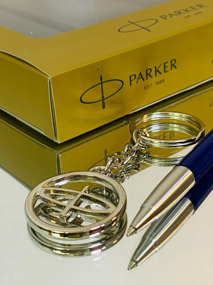 세련된 다크블루 바디에 포인트가 더해진 정품 Parker 만년필 세트입니다.